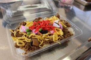 学校の様子5年生児童が、自分たちで田植え・稲刈りをして収穫したお米を使って「丹後ばら寿司」を作りました。食生活改善推進員の皆様に丁寧に教えて頂き、彩り豊かに仕上がりました。お米もおいしく、子ども達から「おいしい!」という声がたくさん聞かれました。自分たちで郷土料理「丹後ばら寿司」を作る貴重な経験をさせていただき嬉しく思います。お米作りでお世話になった今井さん、食生活改善推進員の皆さん、本当にありがとうございました。