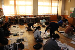 学校の様子書き初めボランティアの先生に来ていただき、書き初め練習をしました。本日は4年生と5年生が練習しました。筆の使い方、字のバランスなど丁寧に教えて頂きながら、集中して取り組みました。今後、3年生や6年生もボランティアの先生に教えて頂く予定です。この練習を、冬休みの課題、1/9(金)の書き初め大会本番につなげてほしいと思います。