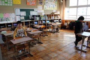 1月7日(水)に3学期が始まり、8日(木)から、さっそくチーム掃除が始まりました。今回から次年度全校のリーダーとなる5年生が中心に進めます。目標やグループを決め、ニュースにまとめて朝の会で各学級に知らせるなど、主体的に活動する姿が見られました。