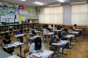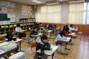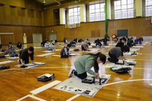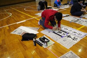 全校で書き初め大会を実施しました。書き初めは「字が上手になりますように」「1年間元気に過ごせますように」と願う日本の伝統文化です。子ども達は、2学期や冬休みに練習していた力を発揮して、集中して取り組む様子が見られました。