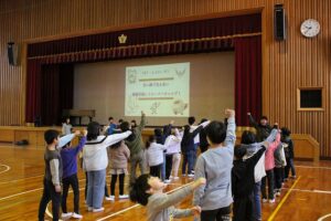 はじめに、大きな声で各チームのスローガンを言いました。練習試合とはいえ、どのチームも気合が入っていました。そして、本番さながらに「真剣な表情」「真剣な声」で跳び続ける子どもたちの姿は、本当に素晴らしかったです。