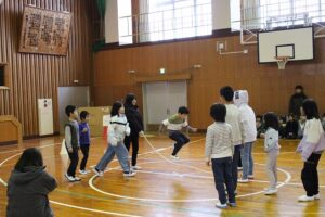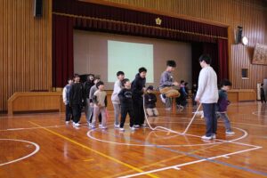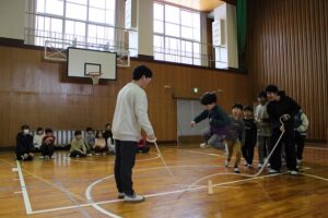 大縄大会まで1週間となりました。本日はこれまでの練習でつけてきた「力」「絆」を試す練習試合をしました。各チームA・Bに分かれ、それぞれ3回ずつ試技を行い、A・Bチームの最高記録を合計した回数がチームの記録になるというルールです。