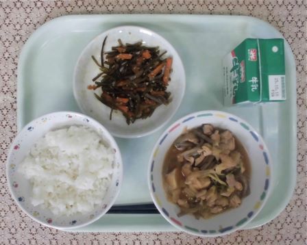 ・ごはん ・牛乳 ・鶏すき ・茎わかめのきんぴら