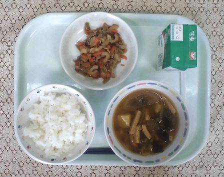 ・ごはん ・牛乳 ・さつまいものみそ汁 ・ちくわとごぼうのキンピラ