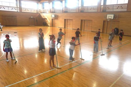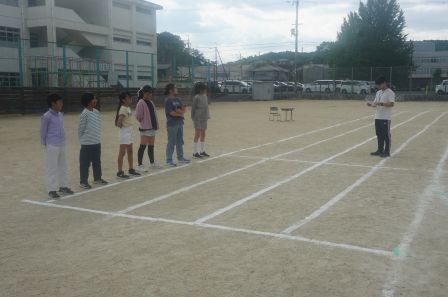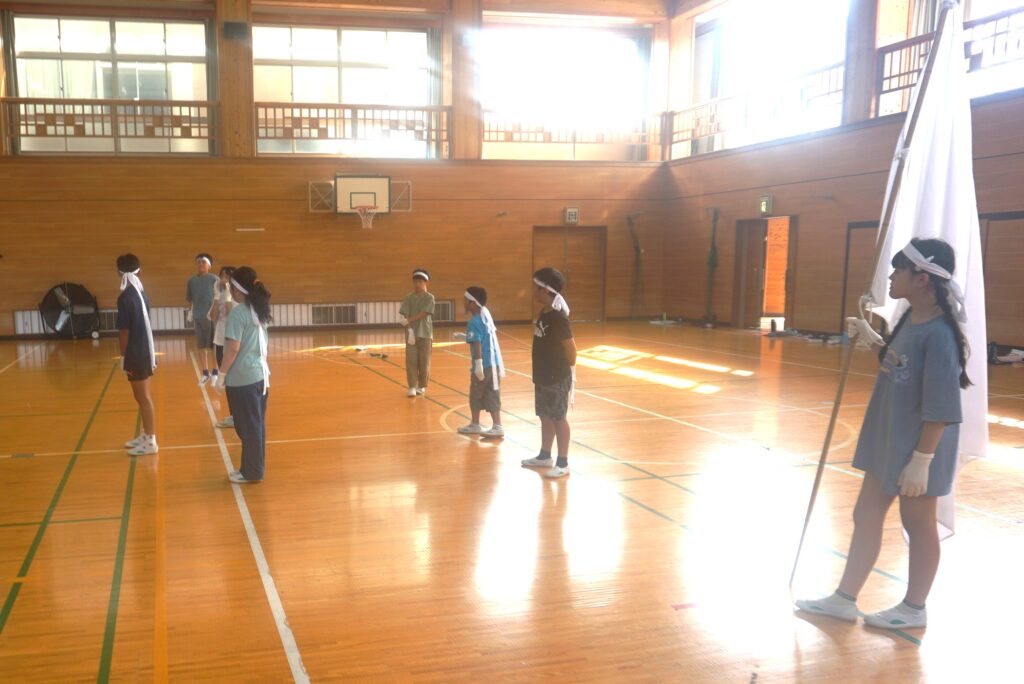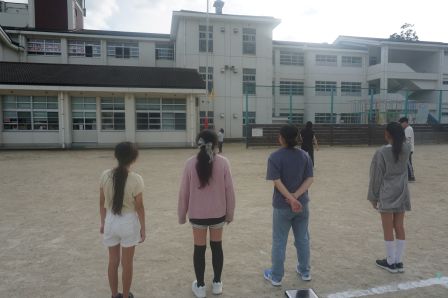 【児童会本部】は、実際に運動場に出て、開閉開式の動きを確認しました。
