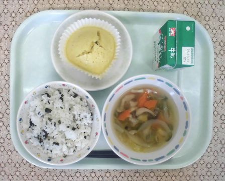 ・わかめごはん ・牛乳 ・レタススープ ・カレー肉まん