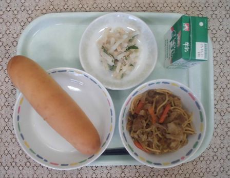 ・小型コッペパン ・牛乳 ・焼きそば ・大根とツナのサラダ