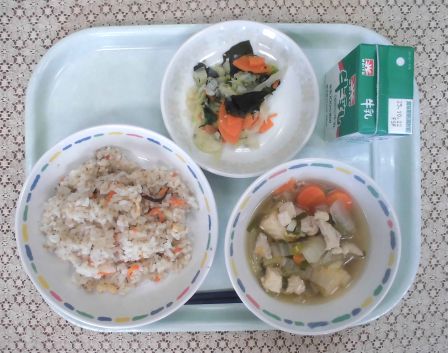 ・ばら寿司 ・牛乳 ・吉野汁 ・甘酢和え