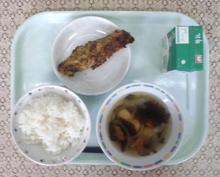 ・ごはん ・牛乳 ・はも団子のすまし汁 ・魚のお茶風味パン粉焼き