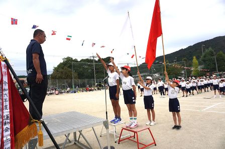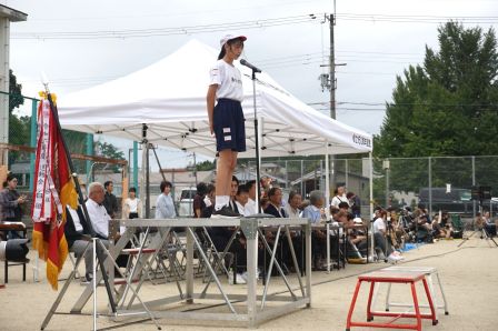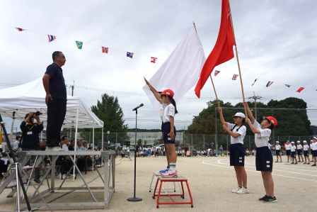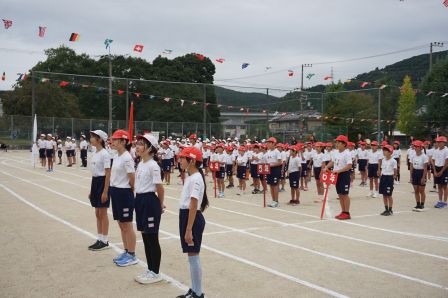 曇天のもとではありましたが、子どもたちのやる気と緊張感が伝わってくる、引き締まった開会式でした。児童会会長のあいさつも、応援団長の宣誓も、とても堂々としていて素晴らしかったです。