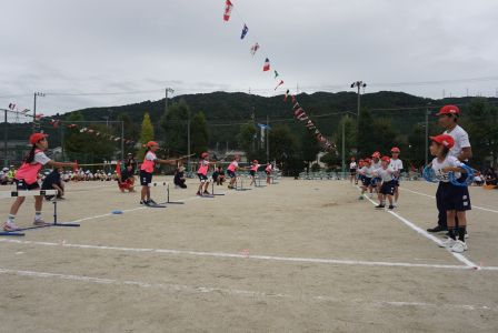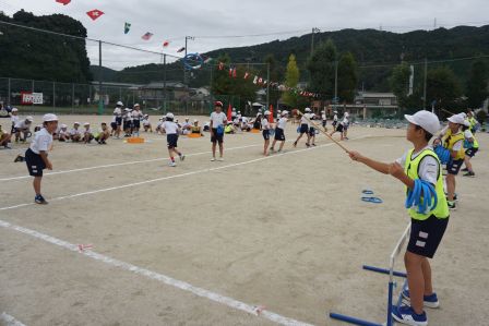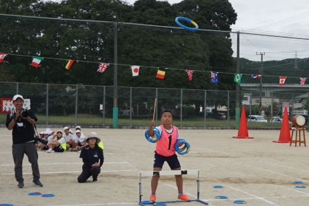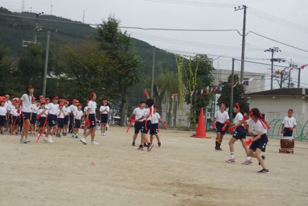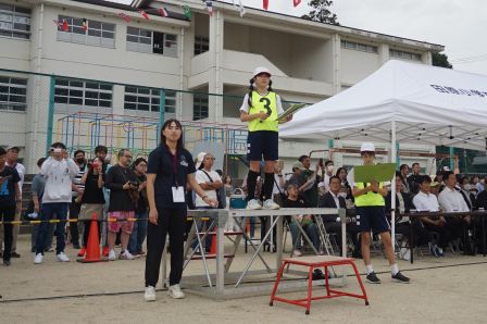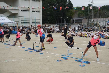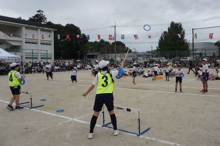 児童会種目は、昨年度に引き続き「リングスロー」です。本部の司会進行のもと、スムーズに競技が進んでいきます。前半戦の得点は、赤組がわずかに1点リード!しかし、後半戦で白組が逆転し、見事に勝利をおさめました!