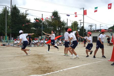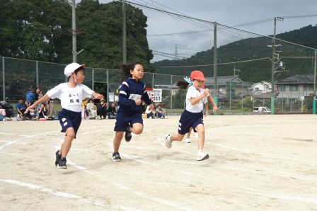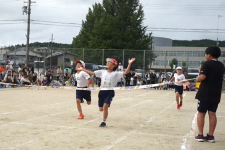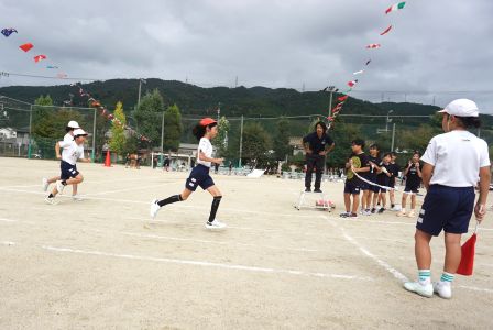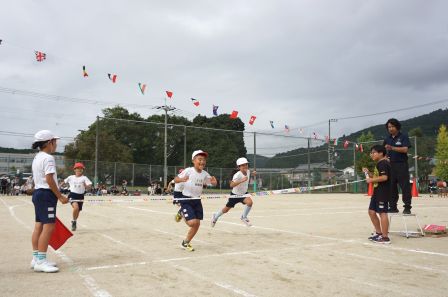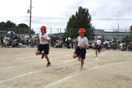 中学年の徒競走です。コーナーワークもしっかりと、みんな最後まで走り抜きました。