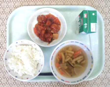 ・ごはん ・牛乳 ・カラフルすまし汁 ・酢鶏