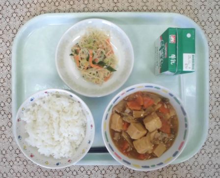 ・ごはん ・牛乳 ・厚揚げの中華煮 ・棒々鶏サラダ