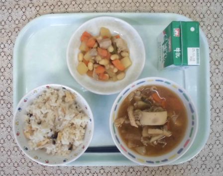 ・きのこごはん ・牛乳 ・豚汁 ・五目煮豆