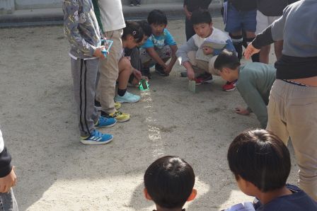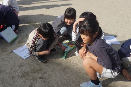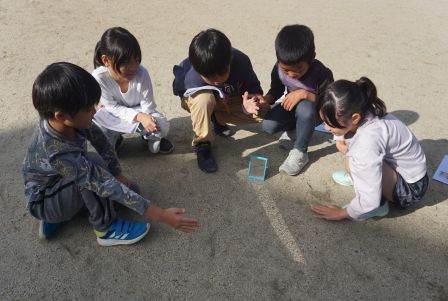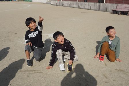 今日の5時間目、突然、チカチカとまぶしい光が校長室に差し込んできました。どうやら、運動場で3年生たちが理科の実験をしているようです。私も外に出て確認すると、小さな手鏡を使って太陽の光を反射させ、その進み方を調べていました。