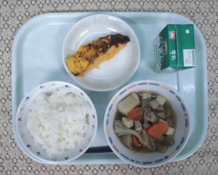 ・ごはん ・牛乳 ・いものこ汁 ・鮭の紅葉焼き