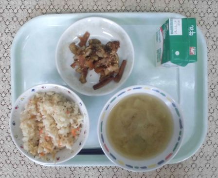 ・切り干しごはん ・牛乳 ・かみかみみそ汁 ・根菜と板ふのかみかみ和え