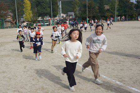 合図と同時に、みんな全力で駆け出していきます。初日の今日は、4年生が社会見学のため参加できませんでしたが、他の学年はしっかりと、7分間、最後まで走り抜きました。
