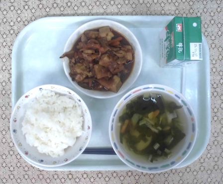 ・ごはん ・牛乳 ・すまし汁 ・厚揚げと豚肉のみそ炒め