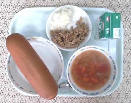 今日の給食今日の給食は「豆と雑穀のミネストローネ」です。「ミネストローネ」は、トマトを使った野菜スープで、トマトの生産が盛んなイタリアで生まれた料理です。トマト以外の食材は、地域や家庭によって様々ですが、今日の給食には、豆や雑穀、ベーコン、玉ねぎなど8種類の具材が入っています。パンと一緒に、味わって食べてください。