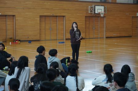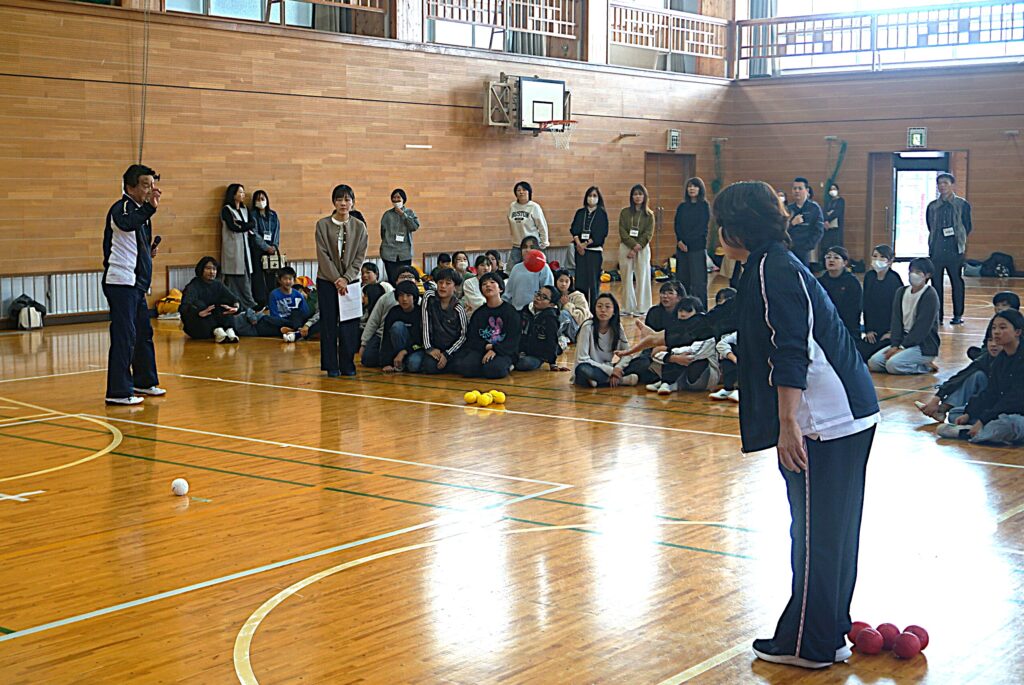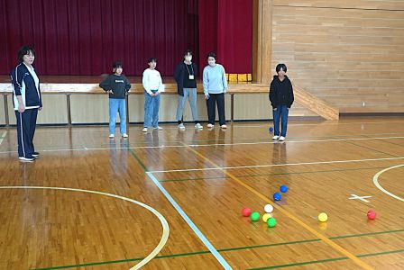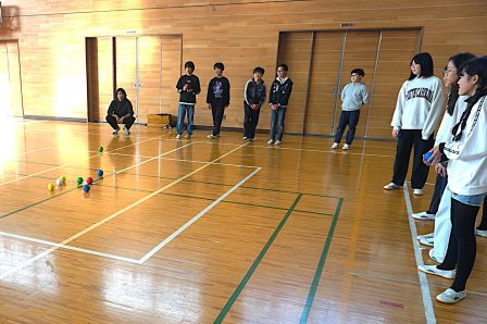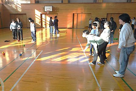 14日(金)の授業参観後に、6年生が体育館で学年行事を行いました。宇治田原町のスポーツ推進委員の皆さんにも来ていただき、3チーム対抗で「ボッチャ」をして大いに盛り上がりました。