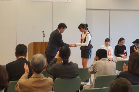 発表後は、青少年育成協議会の田和会長より、記念品を授与されました。
