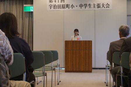 15日(土)に、町総合文化センタ-で「第41回 宇治田原町小・中学生主張大会」が開催されました。本校からは2名の6年生児童が出場し、たくさんの観客の前で、堂々と自分の主張を発表しました。これまで練習してきた成果をしっかり出すことができましたね。