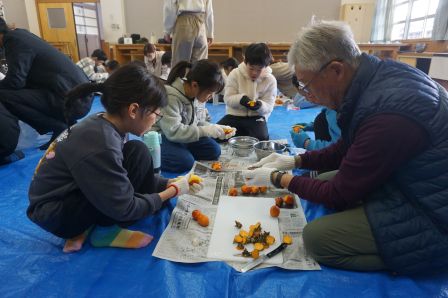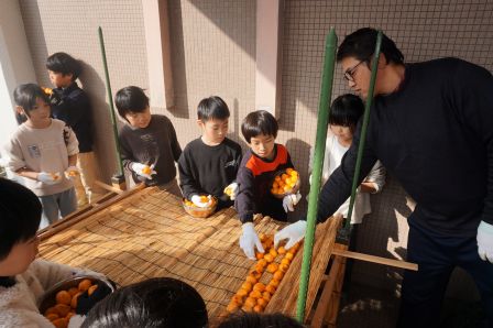 これで準備は完了です。約3週間後には、おいしい古老柿ができるはず。みんなで食べられる日が待ち遠しいですね。森口さま、そしてご協力いただいた保護者の皆さま、本当にありがとうございました。