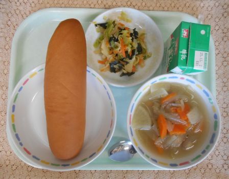 ・味付けパン ・牛乳 ・かぶのポトフ ・ごまドレッシングサラダ