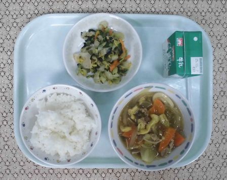 ・ごはん ・牛乳 ・カレーうどん ・白菜の土佐和え