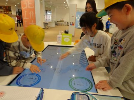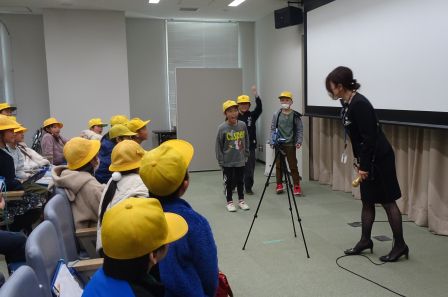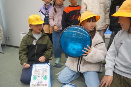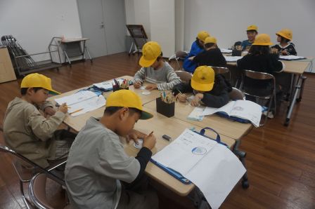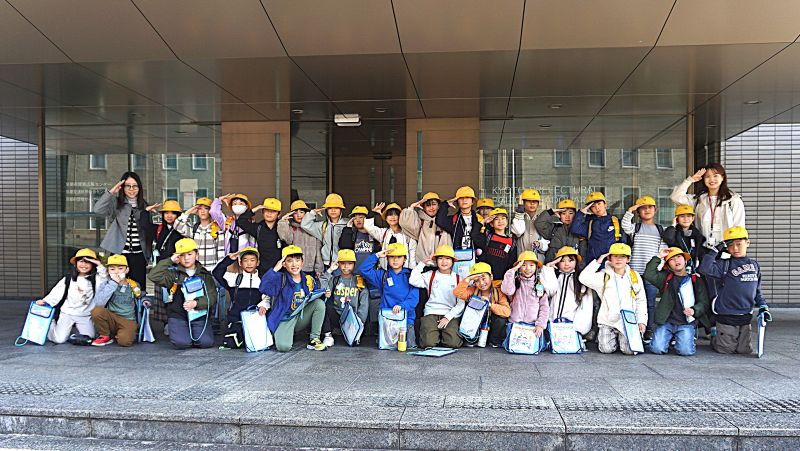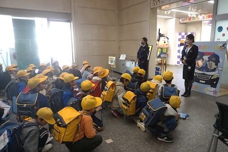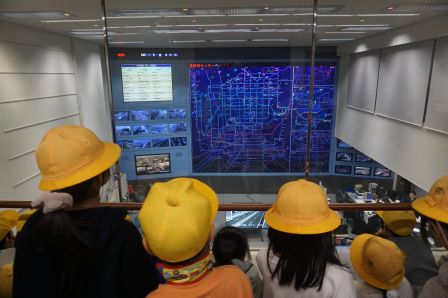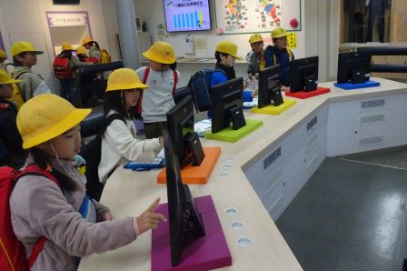 21日(金)に、3年生が京都市内へ社会見学に行きました。最初の目的地は、京都府警広報センターです。まずは施設の5階に上がり、警察に関するクイズをしたり、110番通報に対応する様子を見せてもらったり、実際の信号機や道路標識を触らせてもらったりしました。