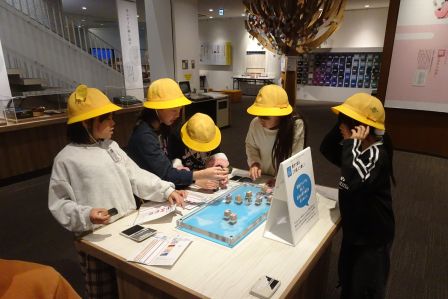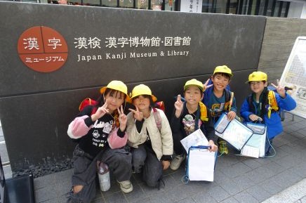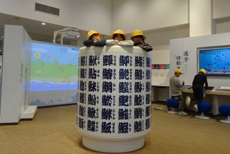 二つ目の見学先は、漢字ミュージアムです。まずは、世界に一つのオリジナル缶バッジを作ります。その後、施設の中の体験ゾーンで、楽しみながら漢字に親しみました。