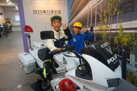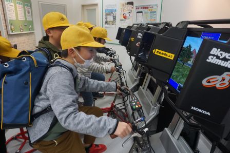 続いて、施設の1階の体験コーナーで、白バイにまたがったり、制服を着たり、また様々なシミュレーションゲームをしながら、犯罪の捜査や交通安全についても学びました。