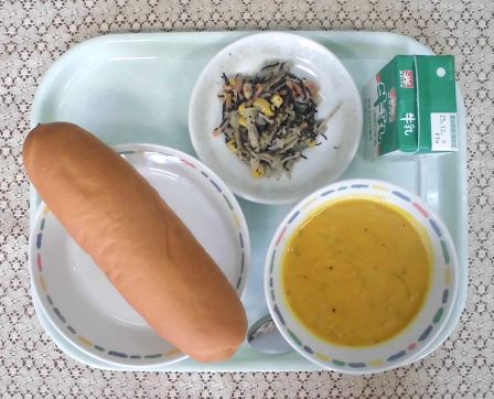 ・バターパン ・牛乳 ・かぼちゃのポタージュ ・ひじきサラダ