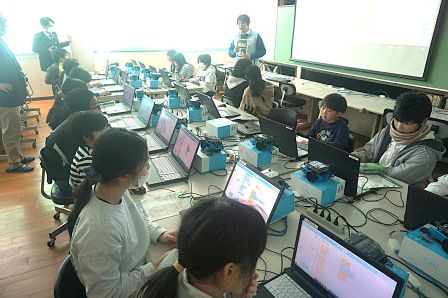 本日、6年生の両クラスで、プログラミング教室を実施しました。宇治田原町がふるさと納税を活用して取り組んでいる「未来挑戦隊チャレンジャー育成プロジェクト」事業の一つとして、IT KiDS株式会社から講師をお招きし、授業をしていただきました。