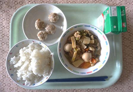 ・ごはん ・牛乳 ・八宝菜 ・蒸ししゅうまい