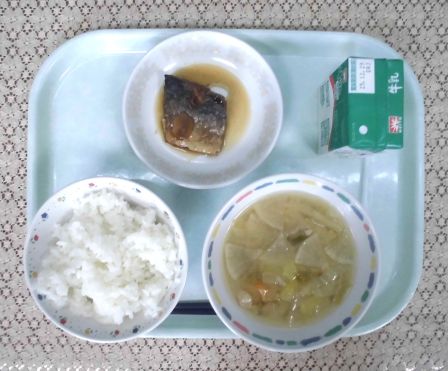 ・ごはん ・牛乳 ・野菜たっぷりみそ汁 ・鯖の生姜煮