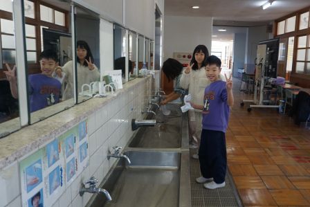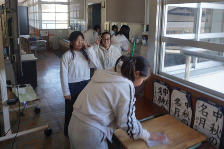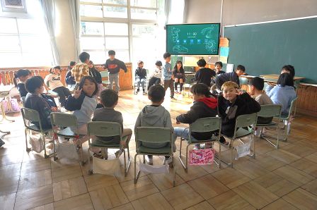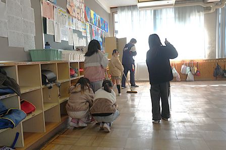 1年生は、早めに掃除に取りかかり、余った時間でフルーツバスケットをして盛り上がっていました。