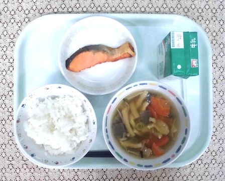 ・ごはん ・牛乳 ・たぬき汁 ・鮭の塩焼