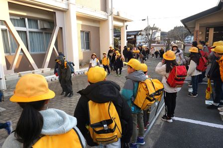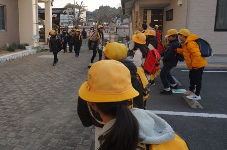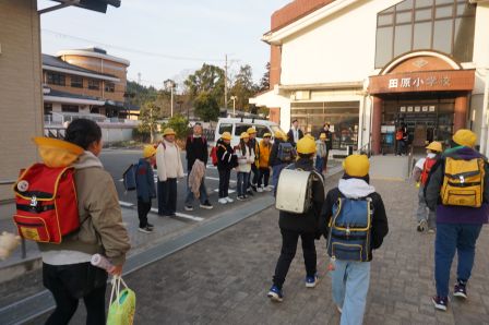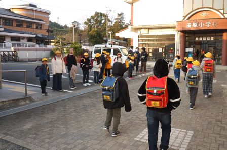 また、本日15日(木)は、維孝館中学校の生徒会からも卒業生2名が参加してくれ、民生委員さんや教育委員会の皆さんと一緒に、登校してくる子どもたちを迎えてくれました。