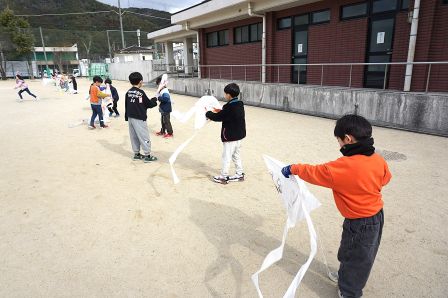 凧あげ(1年) 校長コラム Twitter Facebook はてブ Pocket LINE コピー 2026.01.20 本日の4時間目、1年生が生活科の授業で、凧あげをしました。外は強い北風が吹いており、凧あげにはもってこいです。みんな寒さなんかまったく気にせず、たこ糸をしっかり握って、運動場を所狭しと駆け回りました。 Post Views: 7