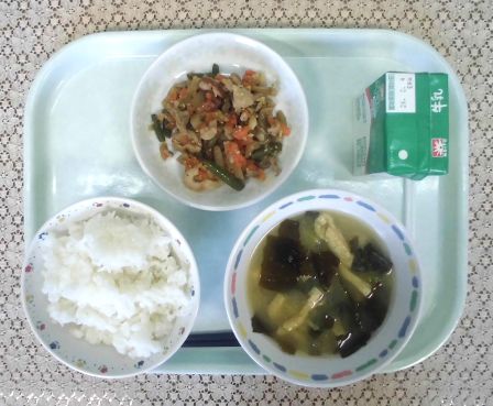 ・ごはん ・牛乳 ・油揚げと小松菜のみそ汁 ・ちくわとごぼうのきんぴら
