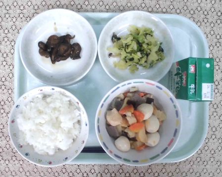 ・ごはん ・牛乳 ・おでん ・チンゲン菜としめじのごま和え ・うじたわら漬け