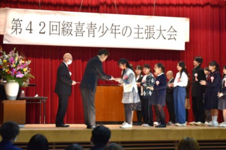 1月31日(土)に、「第42回綴喜青少年の主張大会」が、京田辺市の中央公民館で開催されました。八幡市・京田辺市・井手町・宇治田原町の4つの市町の小中学校から選ばれた15名の代表が、それぞれの主張作文を発表しました。本校からも6年生児童1名が参加し、たくさんの観衆が見守る中、堂々と自分の思いを伝えることができました。
