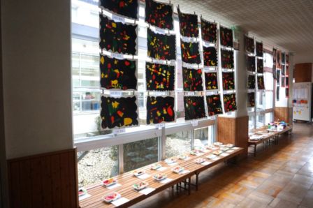 本日9日(月)から13日(金)まで、図工作品展を開催します。子どもたちが図工の授業で制作した、絵画作品と立体作品を1点ずつ展示しています。保護者の皆さまは、10日(火)に授業参観・学級懇談会もございますので、ぜひ子どもたちの力作を見に来てください。