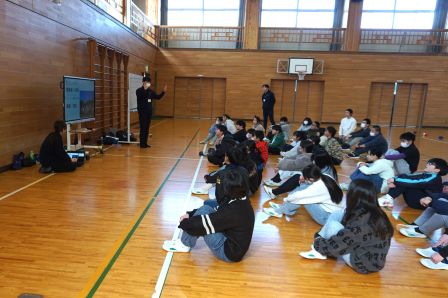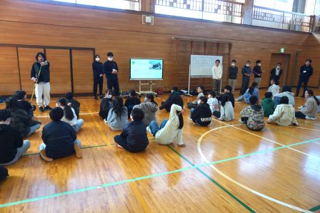 本日の5・6時間目、宇治田原むく福祉会の皆さまにお越しいただき、6年生児童に、障害者に対する理解学習をしていただきました。6年生全員が体育館に集まり、まずはスライドで福祉施設の概要やそこを利用する方々の生活の様子について紹介していただきました。
