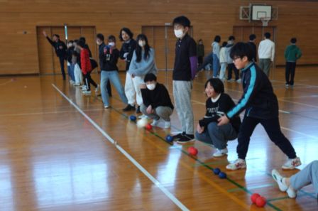 その後は、たくさん来てていただいたむく福祉会の皆さんと一緒にチームを組んで、みんなでボッチャを楽しみました。