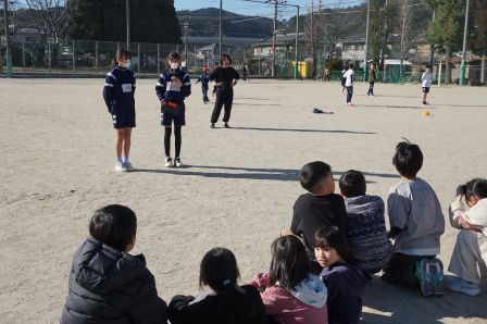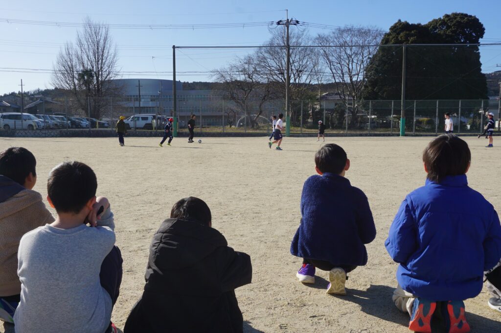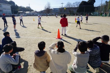 最後は運動場で活動している、球技クラブとサッカークラブです。この日球技クラブは、「キメ顔ドッジボール」をしていました。ボールをキャッチした人は「キメ顔」を披露する変な決まりのドッジボール、みんな楽しそうですね。また、サッカークラブは、本格的な試合をするチームと、小さいコートを使ってミニゲームを楽しむチームに分かれて活動する様子を見学しました。