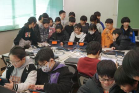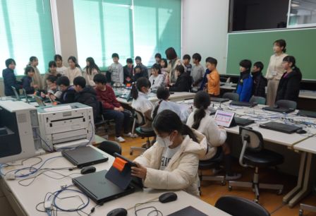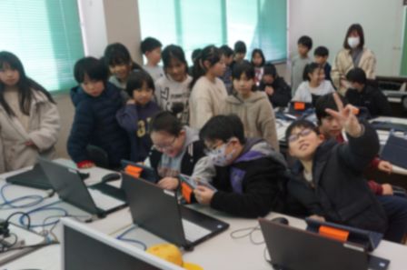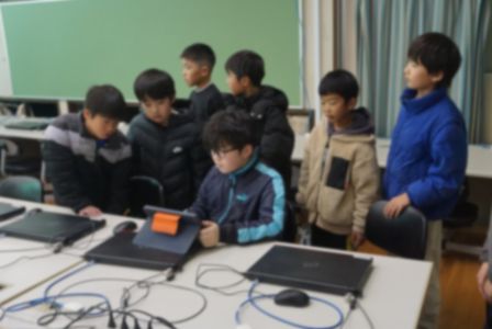次にパソコンルームへ移動します。パソコンクラブでは、「ソングメーカー」というソフトを駆使して、オリジナルの歌を作曲する様子を参観しました。難しそうに感じた人もいるかもしれませんが、先生や上級生に教えてもらえるので大丈夫ですよ。